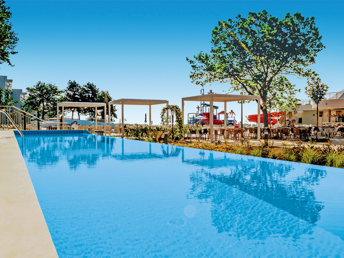 Modernes 5-Sterne-Strandhotel in Albena mit Poollandschaft, Wellnessbereich, Halbpension, stilvollen Zimmern und idealen Angeboten für Familien und Paare.