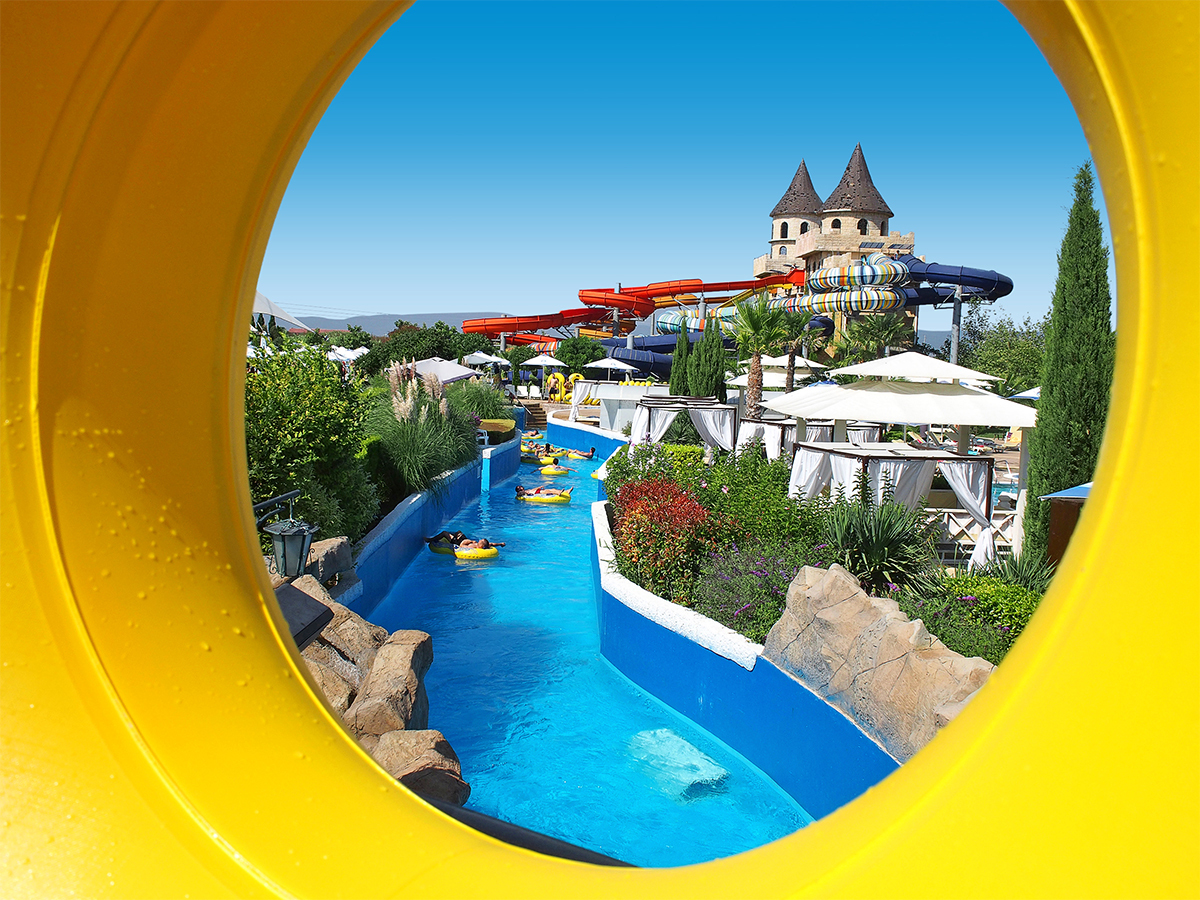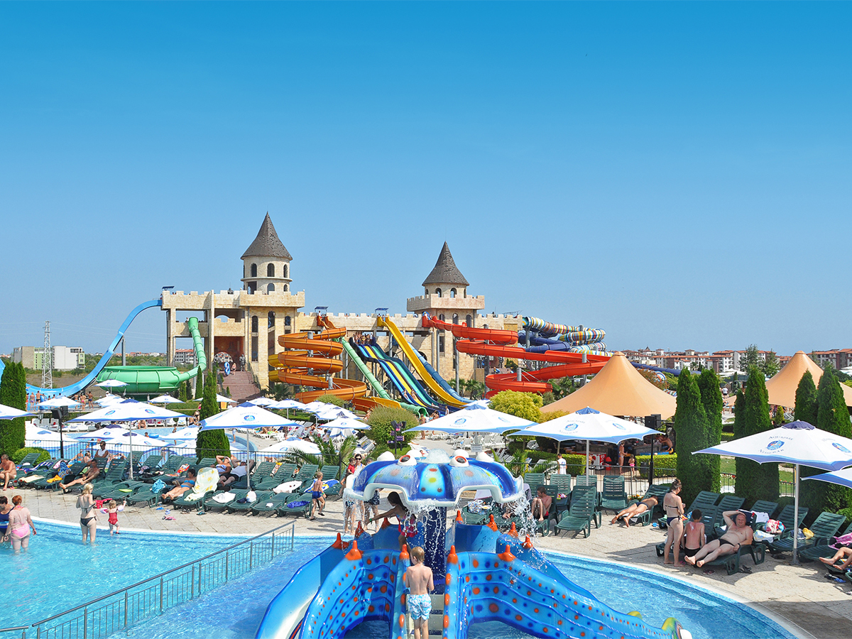 Familienfreundliches Resort nahe Nessebar mit großem Wasserpark, All Inclusive Verpflegung, Pools, Animation und vielfältigen Freizeitangeboten für Kinder und Erwachsene.