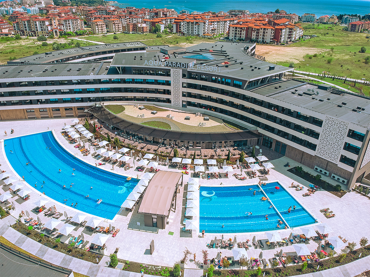 Das Aqua Paradise Resort Hotel ist ein modernes und familienfreundliches 4-Sterne-Resort, ideal für einen actionreichen Urlaub am Schwarzen Meer. Der flach abfallende Sandstrand liegt etwa 500 Meter entfernt, Bars, Restaurants und Geschäfte befinden sich in direkter Umgebung. Die historische Altstadt von Nessebar erreichst du nach rund drei Kilometern.