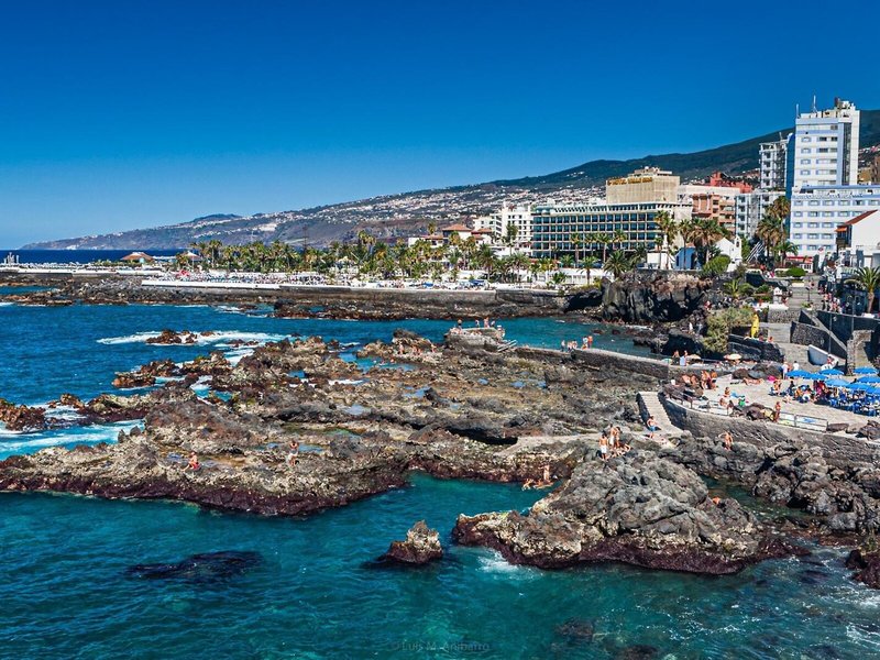 Hotel Teneguia Apartamentos liegt am westlichen Rand von Puerto de la Cruz und verbindet Strandnähe mit guter Erreichbarkeit des Stadtzentrums. Die beliebten Strände Playa Martiánez und Playa Jardín sind nur wenige Gehminuten entfernt, ebenso wie Restaurants, Bars und Einkaufsmöglichkeiten.