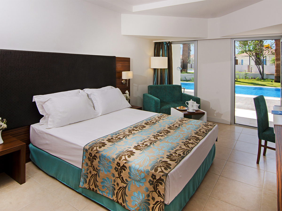 Die großzügige Anlage überzeugt mit einem großen Pool direkt am Strand, einer weitläufigen Liegewiese sowie einem separaten Pool mit Wasserrutschen für Familien. Die renovierten Zimmer und Familienzimmer bieten modernen Komfort und Platz für Paare und Familien. Kulinarisch erwarten dich Buffets, Snacks, Eis, eine Panorama Terrasse mit Meerblick sowie ein À la carte Restaurant.
