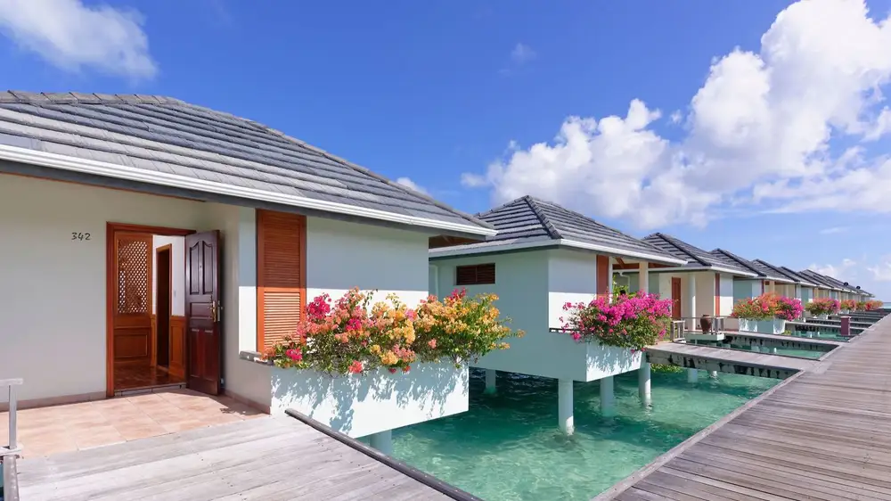 Die Anlage bietet eine große Auswahl an Unterkünften, darunter Bungalows, Zimmer, Apartments, Studios und Suiten – viele mit Terrasse und Meerblick. Zur Ausstattung gehören mehrere Restaurants und Bars, ein Café, Shops, Gartenanlagen, Spielplatz, Bibliothek sowie umfangreiche Serviceleistungen wie WLAN, Transfers, Kinderbetreuung und medizinische Versorgung.